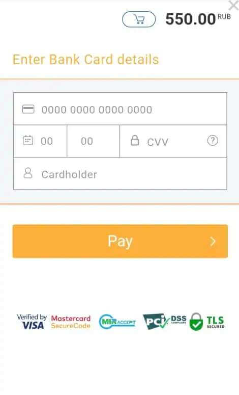 - 7. Zadejte údaje z peněženky a potvrďte platbu.